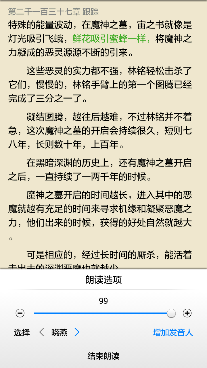5、贴心语音服务:智能语音朗读(讯飞语音TTS朗读),语音搜索, 听书效果好,是懒人听书的理想选择;在线朗读免流量。