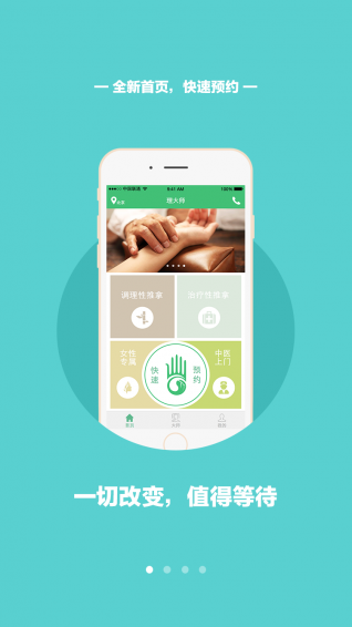 2、方便:理大师服务现覆盖北京、上海、成都、天津,随时随地,预约上门,第一时间响应您的健康之约。专业的推拿师按照预约信息进行上门服务。针对你切实的身体状况,给出有效的调理方案。