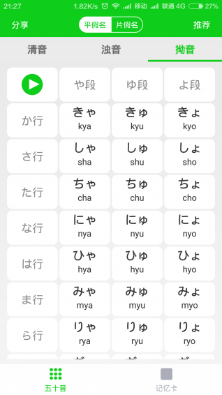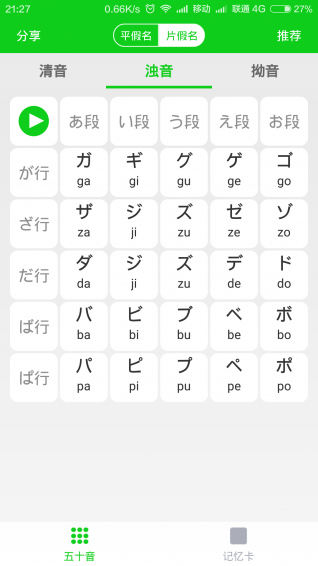 3.支持五十音的离线发音功能,以及每行假名以及每段假名的连续发音功能