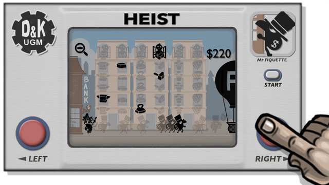 《抢劫(HEIST)》是一款红白街机风格的点击类手机游戏,这款游戏的创意非常大大胆,是以抢劫为背景的,你将在一定的时间完成一系列的抢劫动作切不能够被抓住。目前游戏提供了两种界面样式,如玩家觉得游戏机界面过小影响游玩过程,则可以点击左上角的放大镜将画面全屏化进行游玩。