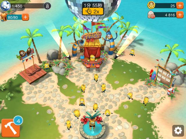 《小黄人大眼萌乐园》是一款经营类大作,小黄人们原本乘坐着游轮在大海上悠闲的享受假期,结果捣蛋鬼菲尔“很不小心”的把整艘游轮弄沉了。好在天无绝人之路,小黄人们很快找到了一处荒岛,假期又重新开始啦!玩家要控制菲尔,以打造荒岛度假天堂的方式,向其他小黄人赔罪,为他们重新制造一个难忘的假期。