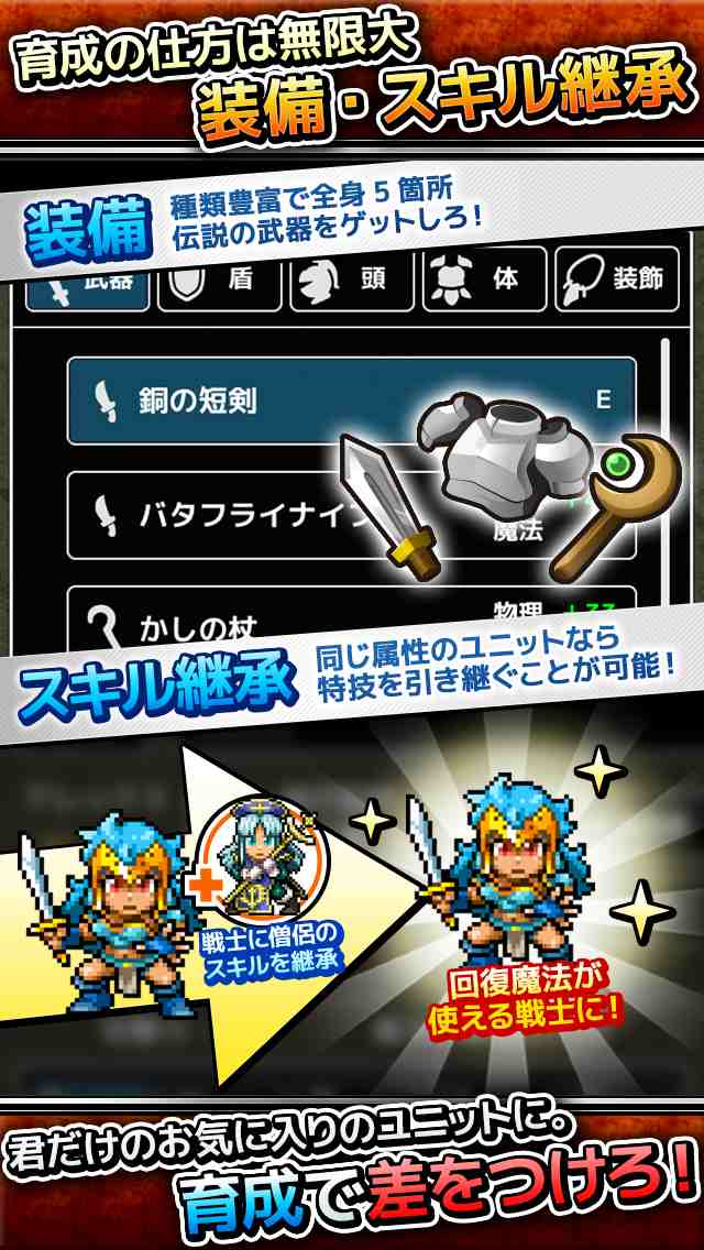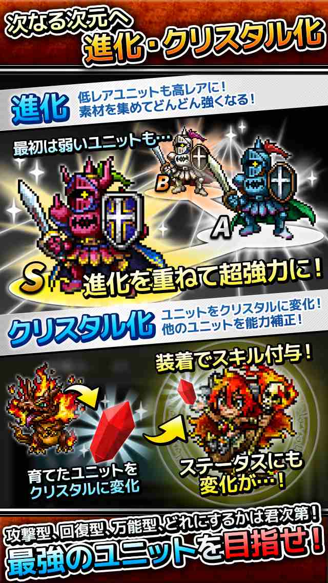 打到敌人获得经验值上升等级,习得技能。还可以运用技能继承学习喜欢的技能。收集素材后让弱队变成强队的“进化”系统,还有水晶化系统等等令小队自由变化。