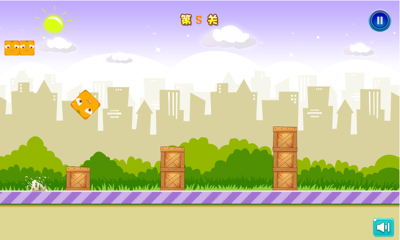 《进击吧大黄》是一款趣味闯关手游,游戏画面清新简约,淡淡的紫色中间点缀一片绿色,看着舒心。游戏中有一个叫做大黄的小方块,玩家需要控制它越过一个个由箱子堆叠组成的障碍物,到达终点后即可进入下一关。