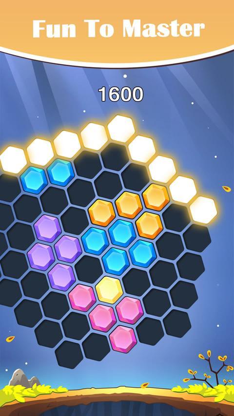 这个类型的鼻祖好像是 1010,只不过从方形变成了六角形,难度差不多,拖放宝石到游戏盘,填满整行完成消除。