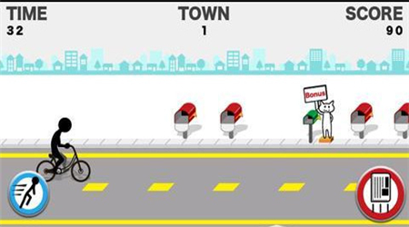 非常休闲虐心的游戏,控制自行车的同时投送邮件,作为投递员的你能成功的送出积分邮件呢!