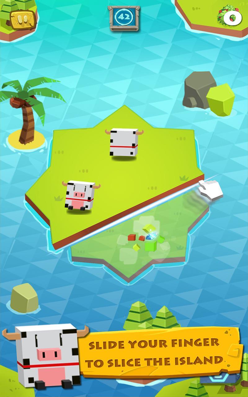 《小岛切切(Floating Islands Crasher)》是一个萌萌的切方块休闲手游。当小动物聚在小岛一边时,快速滑动手指切掉小岛的另一边,在不伤害动物的前提下,切除的越多越好。游戏以外星人入侵地球为背景,用手指切开小岛以获得资源,但不能伤害动物。