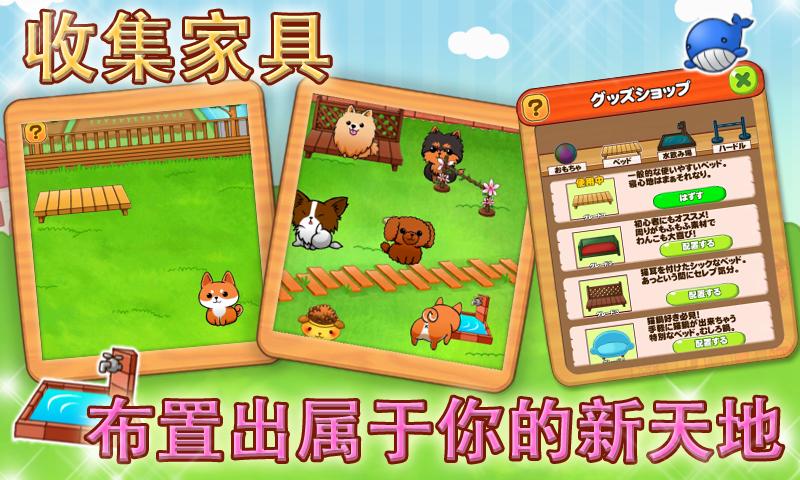 快来和你的小狗一起互动吧,你可以抚摸它们,给它们喂食,陪它们一起玩耍,装饰你的小屋,让这里成为治愈你的新天地&9834;