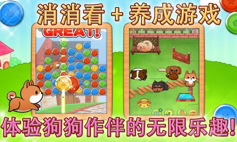 和可爱的小狗们一起,在益智游戏的世界里冒险!简单,轻快的消消看游戏&9834;