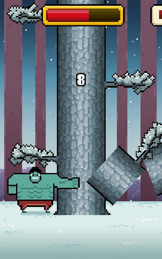 疯狂伐木工圣诞版是一款画面非常简洁清新带有浓厚圣诞气氛的简单趣味类休闲游戏,在游戏中玩家需要控制伐木工不断的砍伐木材并躲避各种树枝的掉落。玩法非常简单,只要在限定的时间内不断砍树,并且不被树枝给砸死就完了。虽然看起来非常容易上手,但是也非常虐人,故有“像素鸟二代”的说法。不过与《FlappyBird》不同的是,《疯狂伐木工》还有多个不同颜色的伐木工可选,所以算是比《FlappyBird》还多些内容。