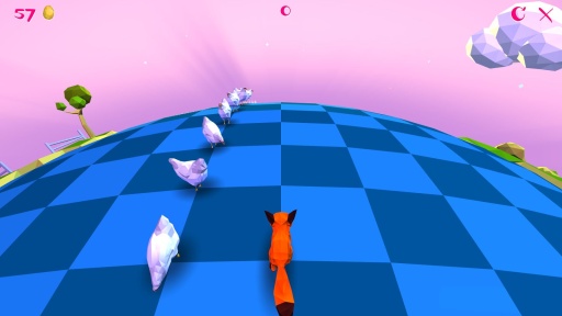 玩家只需要点击屏幕控制小狐狸来抓住那些鸡,之后在获得蛋。类似于地铁跑酷,但是可能更为休闲一些。?