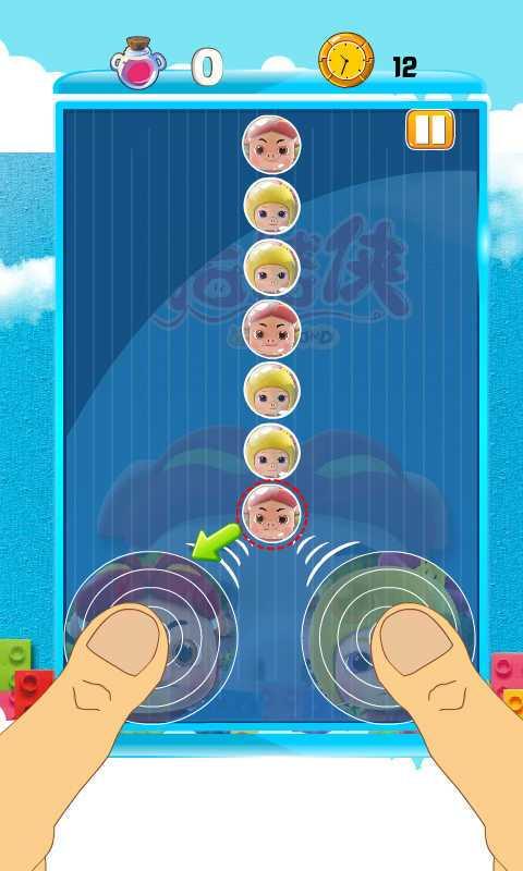 当猪猪侠的头像到达屏幕下方时点击左边的按钮;