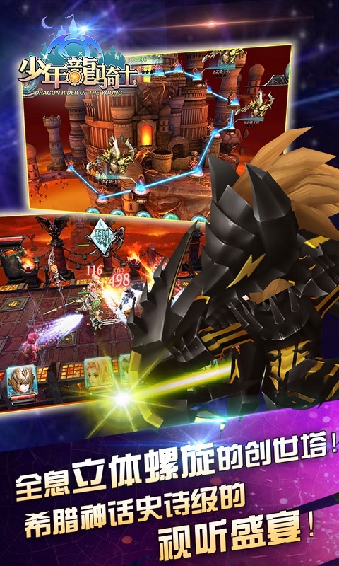 《少年龙骑士》是全球首款双战斗模式手游,全程采用裸眼3D技术,只为带来极致体验!沿袭希腊神话经典剧情,对战冥王,守护雅典娜。天空战地面战同屏展现,带来前所未有的视觉冲击!88星魂英雄一手掌控,组建属于你的梦幻战队;星魂觉醒,巨龙培养,创世塔战,十二宫殿,带你回到那个只属于神的时代。冥王已醒,战火重燃!