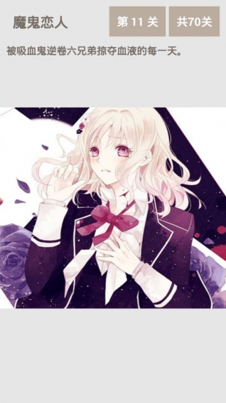 《魔鬼恋人》是一款恋爱冒险小游戏,讲述了主人公小森唯与吸血鬼六兄弟相识相恋的故事。女主角发泄逆卷六兄弟真实身份是吸血鬼,逃跑失败后,抱着不安和恐惧,开始了新生活……游戏通过滑动打散的小图片,最终拼成完整的美图通关,共70关,难度逐渐加大,操作简易,画面精美,娱乐性强。