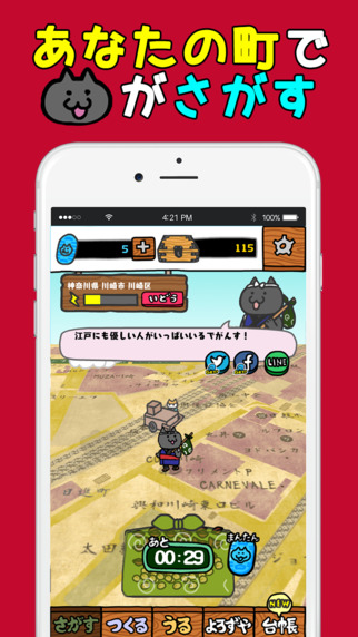 另外,会根据位置联动猫咪的台词会发生变化,根据移动距离会发生奖励活动,一边走动一边玩。还有从本作中作为新增机能能够收集到各都道府县的当地猫咪。如果全部猫咪收集后,会送特别第48只的“当地猫咪”作为礼物!