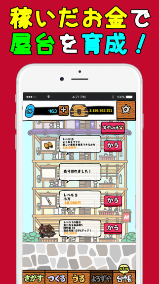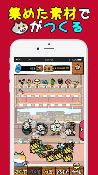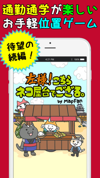 在游戏中收集材料,制作商品再贩卖,赚取金钱的游戏,赚到的金钱可以购买行的小摊档,新道具,小摊档升级后可以进行主要故事。游戏还会根据定位,当玩家移动位置时猫星人台词会发生变化,远距离移动时摊子的营业额也会大幅上升。