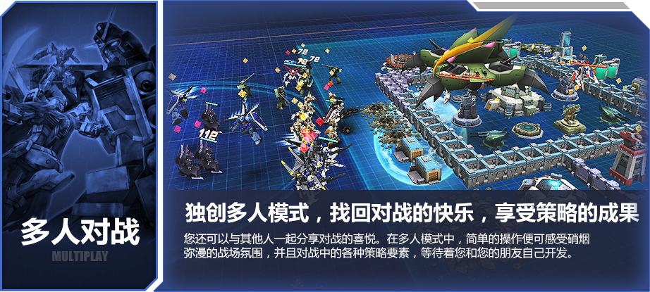 敢达前线指挥官是日本万代出品,国内九游代理的高达题材策略战争手游,游戏以“机动战士敢达”为世界观制作,融入塔防和策略元素。具有极高的策略性,简单的操作就能体验激烈的多人PVP战斗是游戏的最大特色。