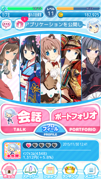 游戏中玩家将扮演大股东,选择5位中意的美少女(企业)开始投资(攻略),虽然也是离不开“提高好感度”的玩法,但是本作的游戏概念还是十分新颖的。
