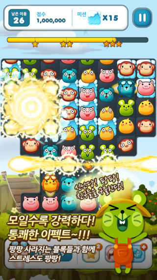 韩国国民级三消游戏《Anipang2》上线没多久下载就突破了1000万,创造了最快破千万下载的新纪录。
