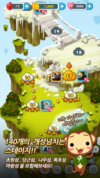 言归正传,相信业内人士都知道,《Anipang》是第一款通过Kakao平台获益的手游,也是打开了韩国Kakao时代的最大功臣,和国内的《天天爱消除》非常相似。