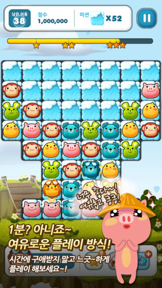 不过,在《Anipang2》中,取消了每次游玩都限制在1分钟内的设置,改为了没有限制时间。而游戏收录了原创的故事以及140个关卡舞台,让玩家体验更丰富的游戏乐趣。