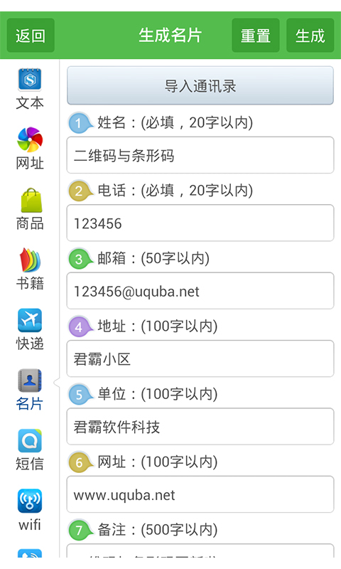 (3)各类图码,全然尽知:商品、书籍、网址、名片、短信、快递等图码,一扫知天下。