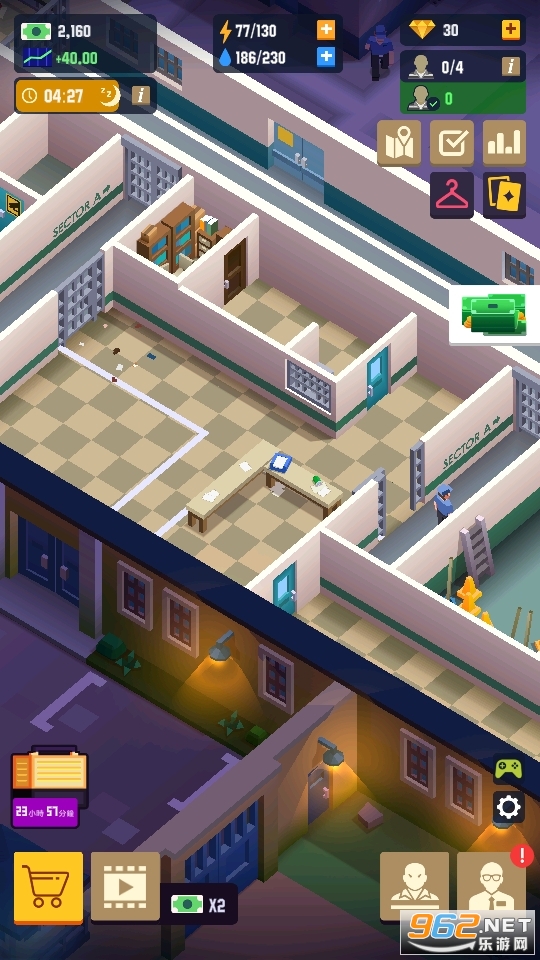 游戏开始你经营一个小监狱,努力工作,改善每一个细节,把你的小监狱变成一个高度安全的监狱,把最危险的囚犯控制住。