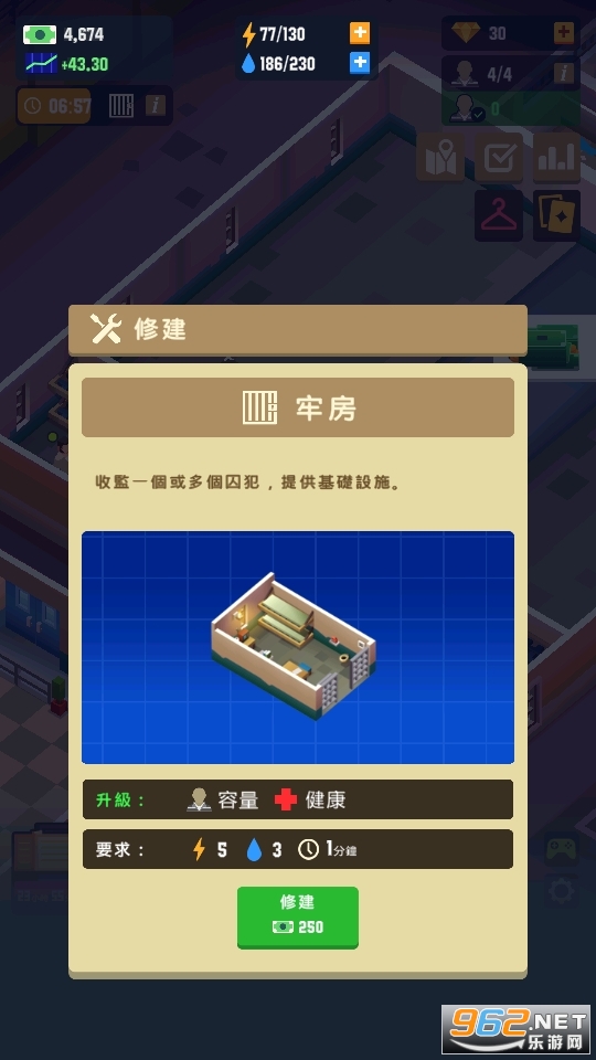 建设监狱,为狱警提供安全装备,改善牢房,满足囚犯的基本需求。每一个选择都会对你的监狱产生影响。狱长的价值是什么?当然是改造囚犯!!