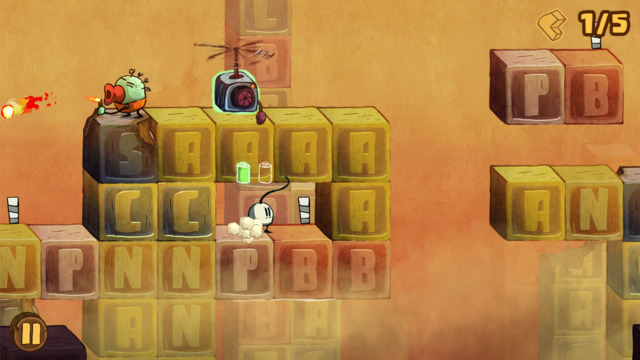 亨德里克是个倒霉蛋,他的一切都被大风吹走了。所剩的就是在他的头上的最后一个头发,和一双有瞬间移动功能的鞋子。它带你寻找并收集亨德里克零星残存房子的碎块。行走可以给鞋子充电,你让亨德里克在变换的世界里,使用瞬间移动功能。