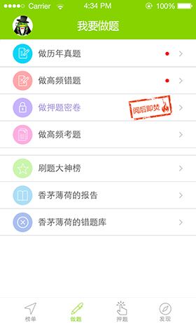 6年全真试题和押题榜名师出的模拟练习题。鸭题榜相信做题是通过考试的最大诀窍。