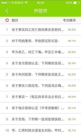 鸭题榜一款帮助考生通过做题,提高考试分数的手机APP。鸭题榜让考生在有限的时间里只做优质题和我该做的题。考试项目有:司法考试、公务员行测、建造师、执业医师、研究生、人力资源管理师、心理咨询师和护士执业资格考试。