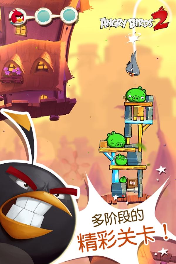 《愤怒的小鸟2修改版 Angry Birds 2》史上最大移动游戏 Angry Birds 再续新篇!超炫的游戏画面、挑战性多阶段关卡、狡猾的 BOSS级猪猪、更强更大的杀伤力——Angry Birds 2 开启了弹弓游戏的新纪元。