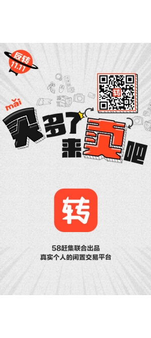 买买买!总是挺不住手,家里堆了一堆既不舍得丢又没有多大用!现在‘58转转’帮你把这些闲置二手物品通通换成钱!安全快捷,方便处理家里闲置物品,同时也可以在这里购买便宜的二手物品,没事就来转转吧!
