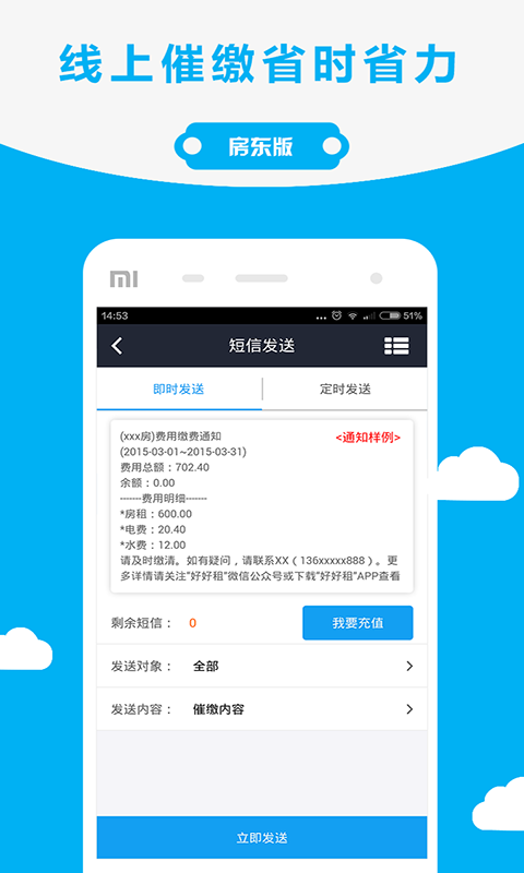 1、支持短信催缴房租
