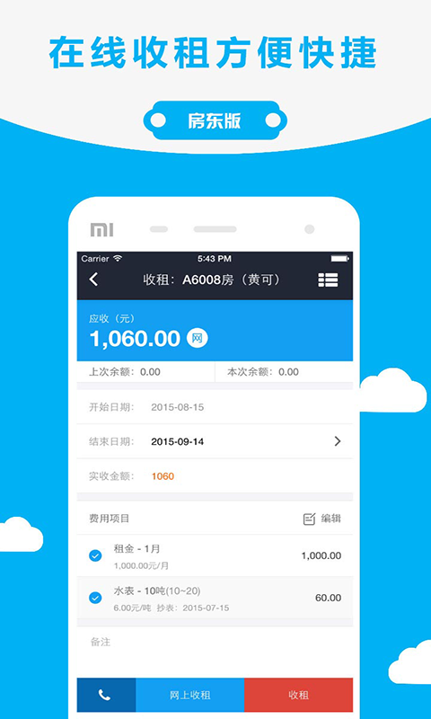 2、支持网上收租功能