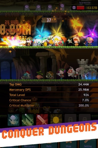 《点击!点击!遥远的王国》是一款童话风格的点击闯关游戏,考验你手指的速度,快速点击打怪冒险,雇佣手下帮助你战斗,随着游戏的进行难度加大,怪物们越来越多,Boss几率也越来越大,所以可以升级装备协助你。