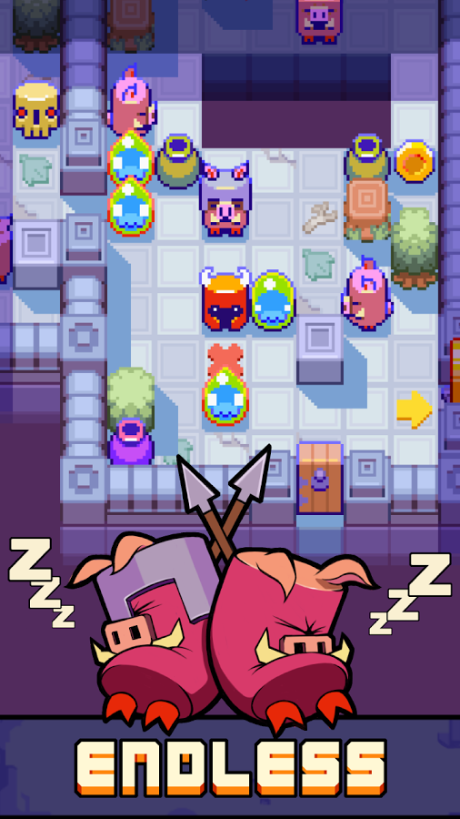 只要玩家控制的红衣小恶魔踏出一步,同一场景内的敌人与机关也会随之行动起来。而敌人的行动虽然随机且难以预测,却也不是完全无迹可寻,因此玩家要对此多加研究,尽量给自己多添一些获胜的机会。