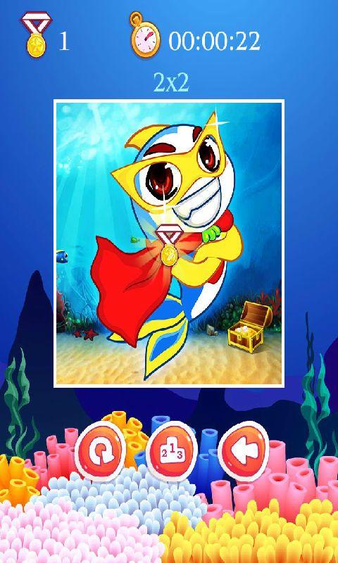 《海底动漫总动员》是一款以海底世界为题材的益智拼图小游戏,游戏中有着各种精美的鱼类图片,每个关卡中你都要在规定的时间类把分割后的图片还原,游戏比较简单,适合打发时间。