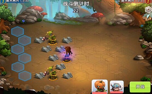 当开始一场战斗后,最先进入的是布阵倒计时界面。在这里玩家需要点击选中下方的右方英雄并放置到场上蓝色格子区域。或者直接点击开战让系统自动布阵。需要注意的是布阵时间只有30秒,如果有特殊的战术的话需要抓紧哟。