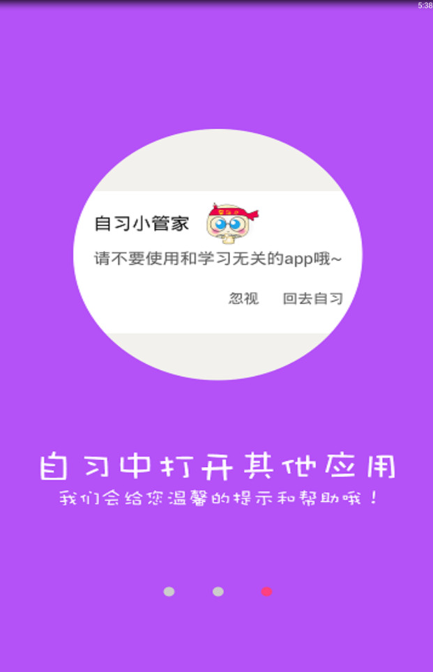 同学们马上就要期末考试了,是不是都在复习备考呢?可能你会管不住自己的手,想玩玩手机,无心复习,不过不用担心,使用这款软件可以帮助你摆脱困扰,它会自动禁止你使用与学习无关的应用,你可以安心自习,还可以记录你自习的情况,方便实用,考生必备!