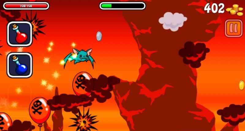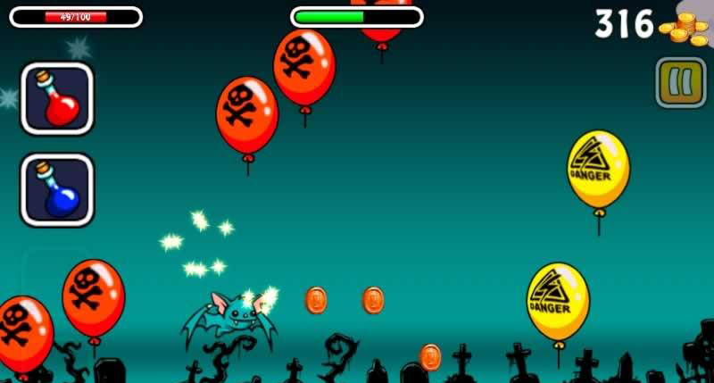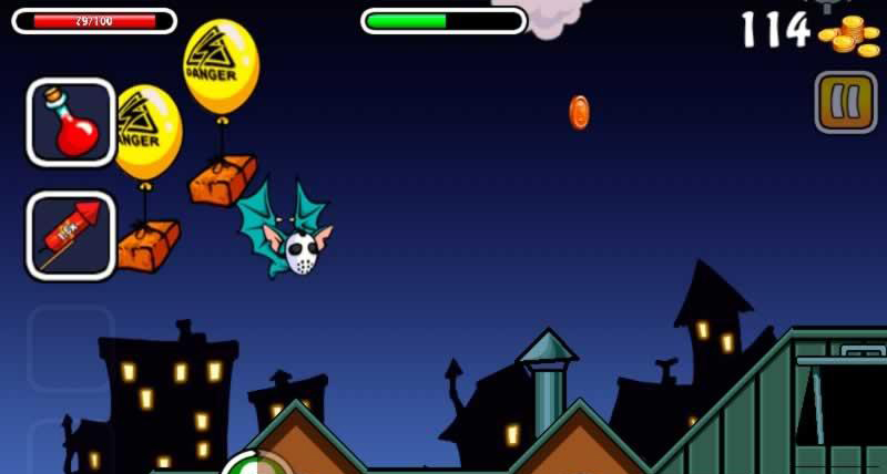 夜蝙蝠续作登场!‘夜行蝙蝠2’中玩家将继续扮演也玩出来觅食的蝙蝠,依然是横版跑酷类的玩法,操作模式也没有改变,你需要帮助蝙蝠在保证安全的前提下不断前进并收集食物,夜晚吃的很多,危险也很多。