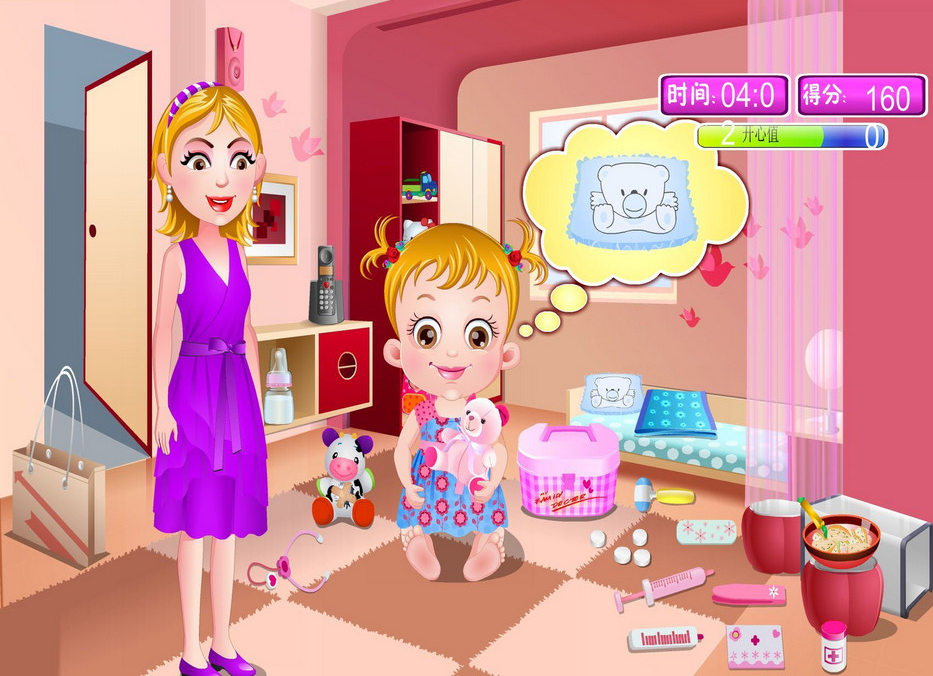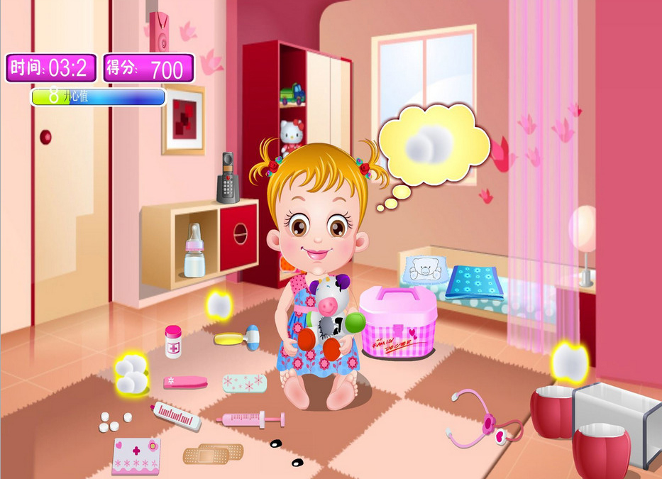 《小宝宝当医生》是一款模拟小宝宝当医生的趣味小游戏,游戏中有一个小宝宝想要当医生,所以妈妈就带她去商店买了各种医疗用品回来,你要帮助小宝宝正确的使用这些道具,简单有趣。