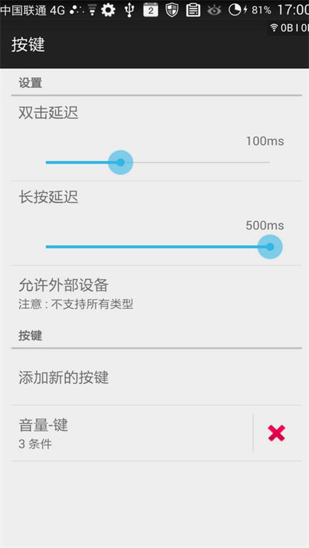 添加的实体键可以设置触觉反馈、呼叫按钮、激活条件等