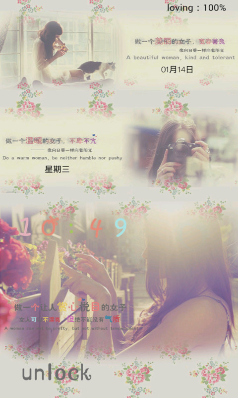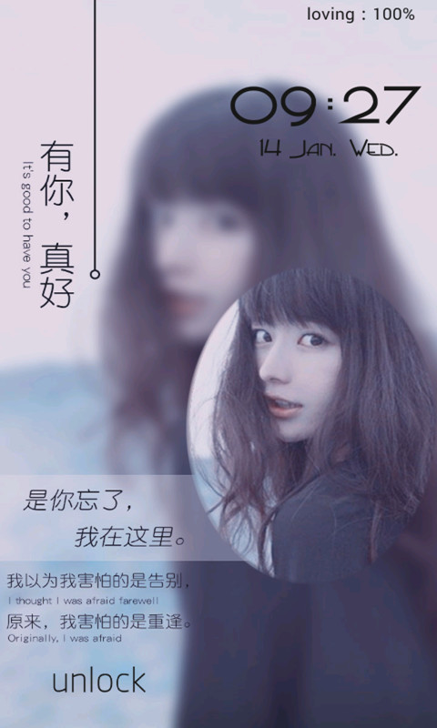 用非主流唯美文字锁屏随意DIY自己的手机桌面哦!每时每刻都保持新鲜感,时尚感,帮你制作最精美的手机主题,各种唯美爱情,最新伤感语,句小伙伴们看到都会惊呆的!