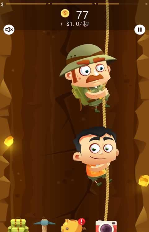 《专业淘金者 Golden depth》是一款好玩的休闲游戏。游戏的操作很简单,你只需要点击屏幕,两位淘金人员就能顺着绳子下落,同时你还需要收集路途中的黄金!
