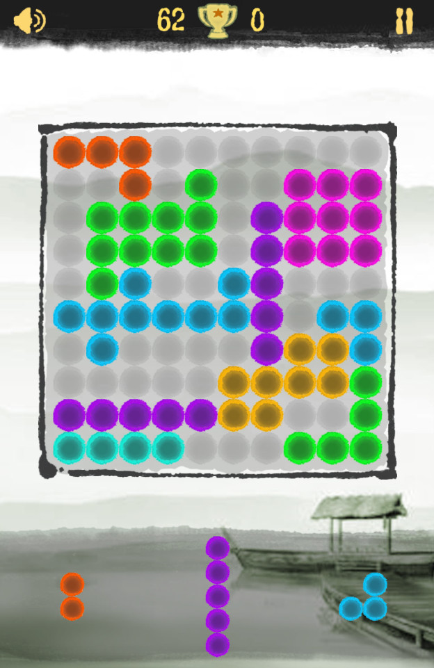 《啪啪消消乐》是一款以俄罗斯方块为基础改编的另类消除游戏,游戏画面简洁,采用水墨风格。游戏玩法简单,通过移动各种块状的物体到游戏界面中,当相同颜色的组成一排或者一竖时消除,知道不能再消除。