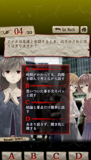 《心理诊断:有人在背后说我坏话吗?》是一款心理测试风格的趣味游戏,不要当真,玩玩就好!通过30道充满考验性的题目进行测试回答,对你的心理进行诊断,测试你有没有心理问题。