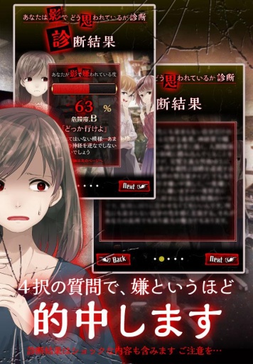 全新的心理测试类手机游戏!是否总感觉你身边的人在背后说你坏话?整天都疑神疑鬼?那可能是你心理或精神上有问题,不妨试试这款心理测试游戏《心理诊断:有人在背后说我坏话吗》,帮助你测试一下吧!