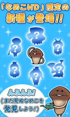 《滑子菇栽培 HD》(なめこ栽培キット HD)是系列作《滑子菇》的高清优化版,跟之前的玩法一样都是摸摸,点击收获等等。并且新游戏还增加了新要素。 此版本加入了初代的《滑子菇栽培》中的54种菇菇,另外,还在《滑子菇栽培HD》中追加了新物种!要好好看清游戏中出现的珍贵的滑子菇的条件!令图鉴100%完成吧!