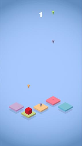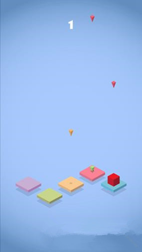 游戏操作极其简单,通过点击屏幕两端任意区域,控制正方体在几个石块上移动,以躲避暴雨般下落的金字塔。一旦金字塔戳中你的正方体,游戏随即结束,非眼疾手快高手还真玩不来。