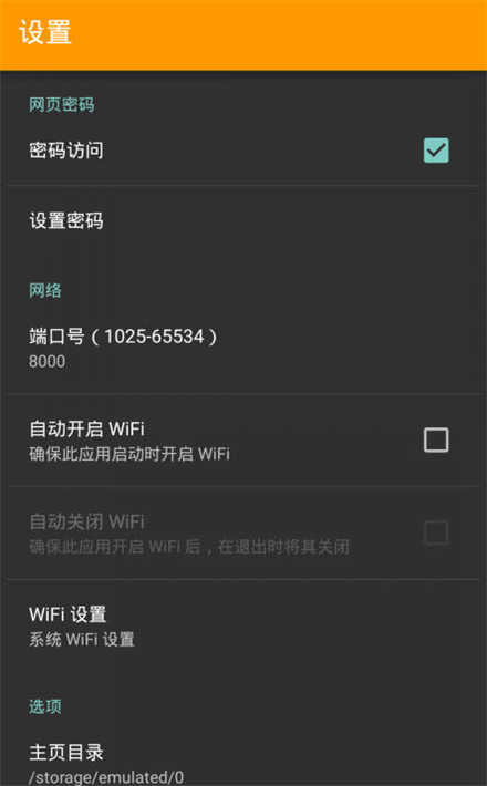 安全起见,如果你在公共场所通过 Wi-Fi 网络管理文件,建议你进入 WiFi File Explorer PRO 的设置界面,开启密码访问功能